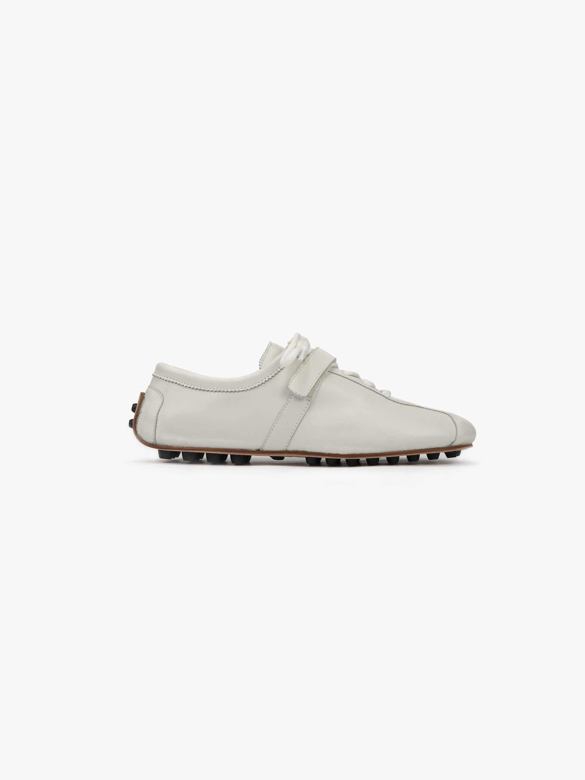 A glove sneaker crafted from premium nappa leather, offering a soft, comfortable fit that wears beautifully over time. Finished with a velcro strap, padded tongue and ergonomic insole, while the signature car shoe studs deliver a chic yet comfortable finish. Inspired by the lifestyle of Mediterranean heiresses of the 1970s and 80s.