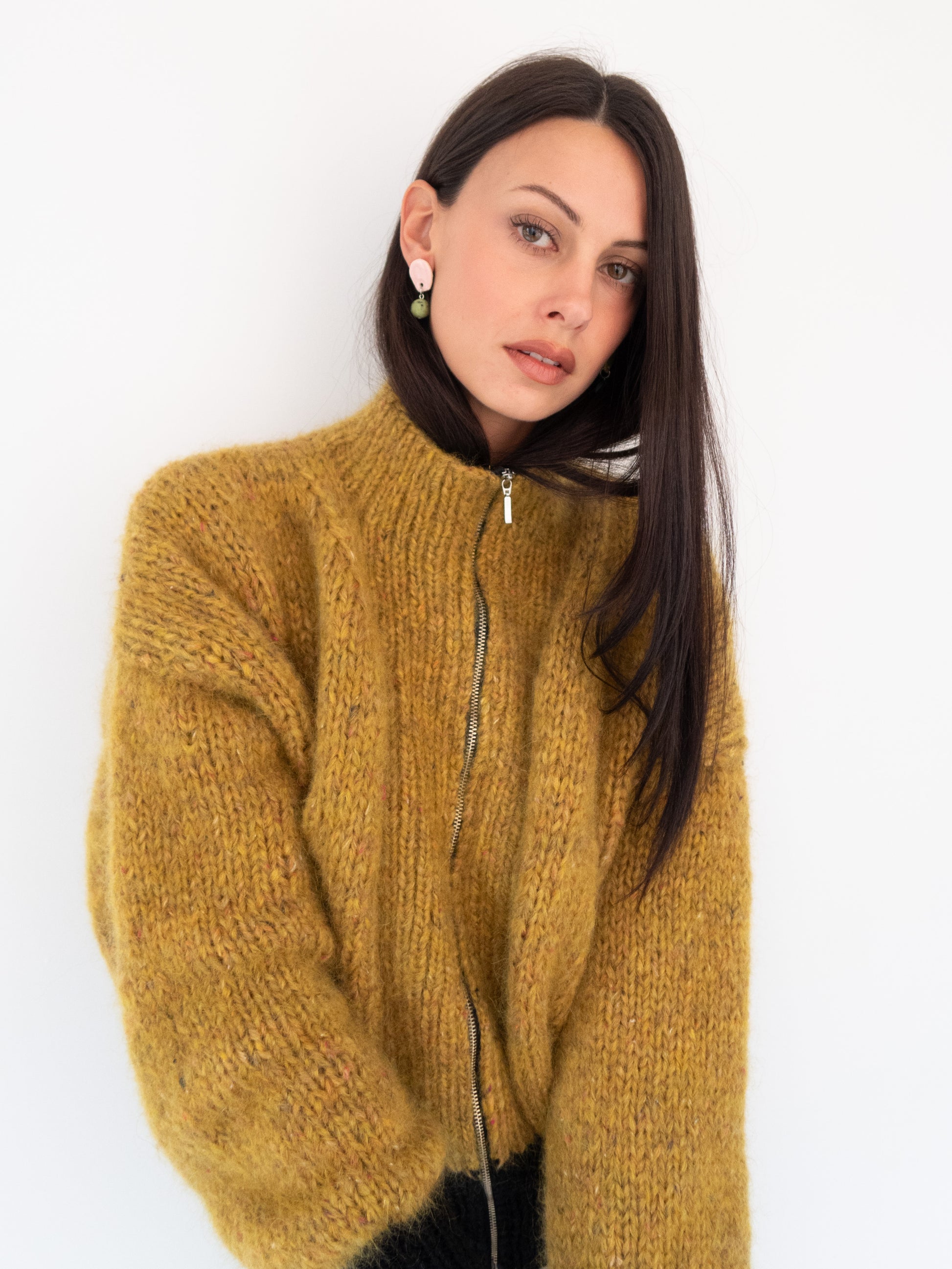 A single earring, ready to be paired with its matching colour or mixed with another combination. Hand-formed stoneware glazed in puff pink with a green Turquoise droplet. These earrings have 925 silver stud posts.