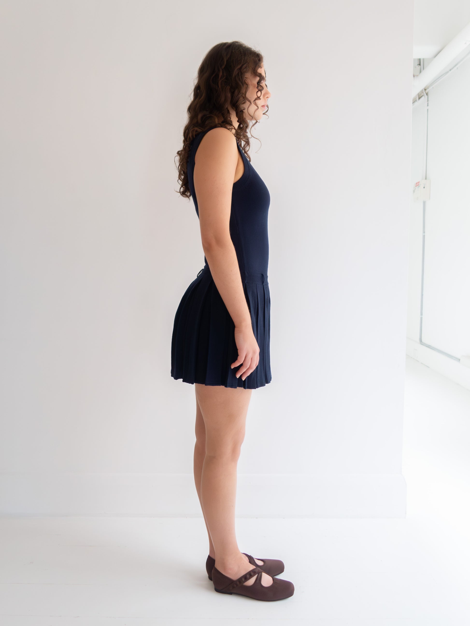 Made from a fine knit Merino Wool, the Millie Dress is reminiscent of a sporty style tennis dress with a V neckline and pleated skirt. Soft, comfortable and light against the skin, this is a wonderful trans-seasonal piece that can be worn as is for warmer weather or layered with tights and a sweater for winter.